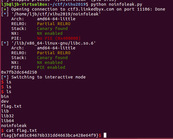[*] '/home/ljb/ctf/xihu2019/noinfoleak'
